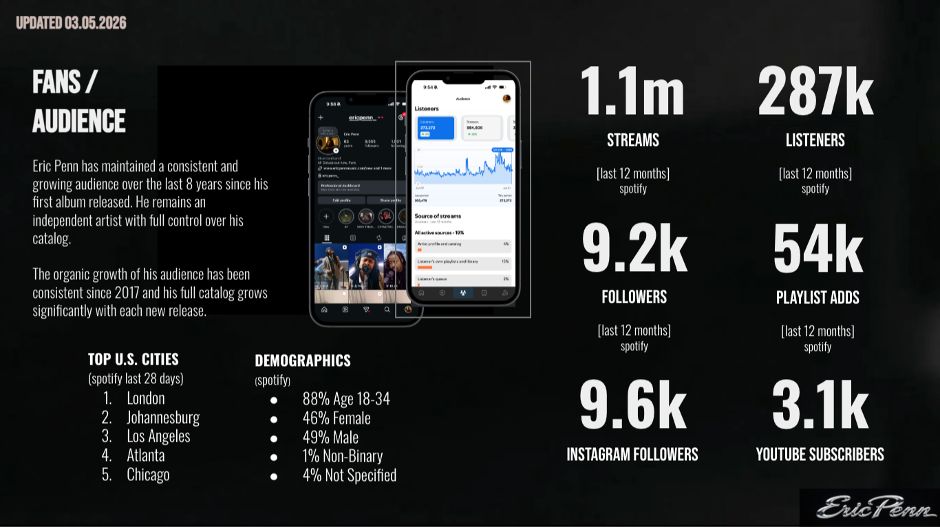 Currently based in Harlem, NY, Eric Penn is constantly pushing boundaries and evolving his sound.